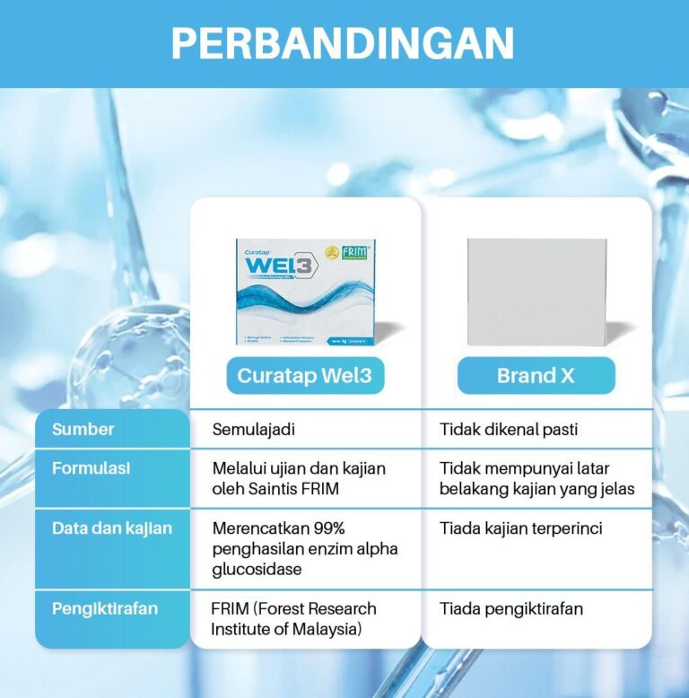 “Curatap WEL3 telah menjalani ujian makmal dan terbukti memberi kesan yang sangat tinggi dalam merencat dua enzim yang terlibat dalam pengawalan aras gula dalam darah selepas makan iaitu alpha-amylase dan alpha glucosidase.”